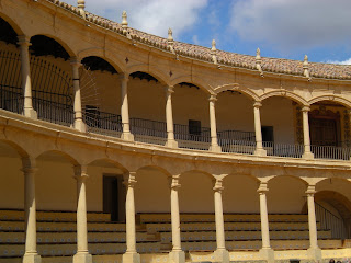 Ronda is divided in to two parts, Old and New and the two are separated by a huge bridge called Puente Nuevo over an equally huge gorge. We walked across the bridge and along the edge of the cliff stunned at such a fantasic view in the middle of ‘town’. We then went in to the Bullfighting ring which was the first to have fighters fight without being on horseback (i.e modern bullfighting) Unfortunately for us, although not for the bulls, fights only happen once a year now, in early September, which we missed. We walked around the grounds, seats and museum within the ring, and the stables etc outside.