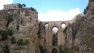 A few days ago, I somehow hurt my foot and sprained my big toe, so when Edu, Simryn and Martin decided to climb down the gorge to take pictures of the bridge from the bottom, I went to Ronda’s wine museum instead. It was a really exciting experience, actually, with the little bits they translated in to English and the even smaller bits of Spanish I could piece together.At the end of my walk through the twelve informative rooms, I went in to the courtyard for my tasters. The lady gave me five 100 ml wines: A local red wine produced in their cellars, very dry but good, a local sherry that tasted a little too much like Aquadent ( otherwise known as Portuguese Fire Water, a totally different story!) for my liking, and three delicious desert wines, one sweeter than the other. I chatted to a German couple about South African wines at the time and was really pleased I had stopped in there.