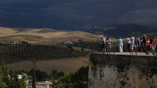 After breakfast we drove away from tourist riddled Benalmadena (near Malaga) and the coast line and made our way inland to the town of Ronda. We took the scenic route there and scenic it was. Inland Spain certainly ‘feels’ a lot more Spanish! Beautiful, dry landscapes, mountains, rundown villas, ruins, rock formations, stunning modern villas, olive groves and terraced fields kept us entertained on the +- 100 km drive.