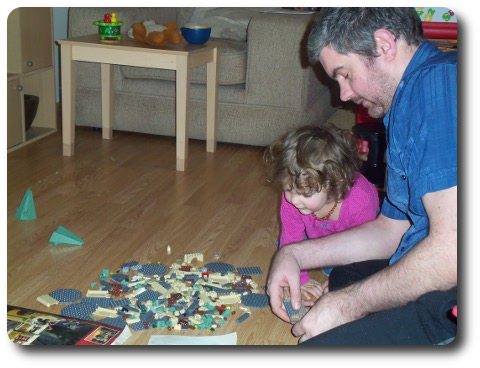 The sickness bug just won’t leave our house, so we’ve been laying low, doing what we can to keep busy while keeping warm. Here’s Daddy and Ameli building Lego.