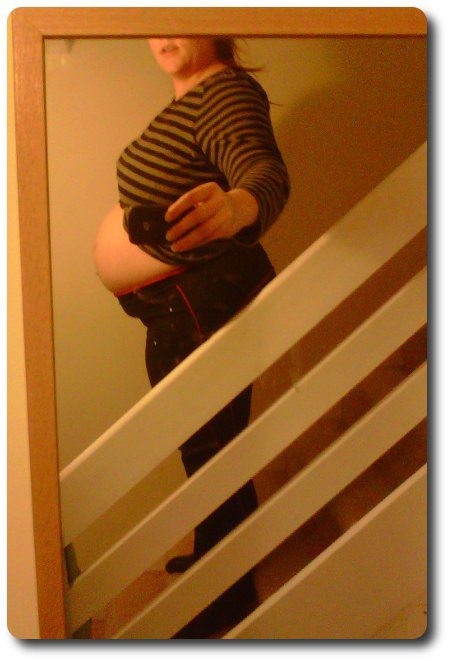 Getting there… where ever there is, and here’s the obligatory belly shot for the week.
