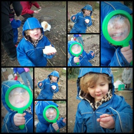 I warned you these would be a recurring theme in our pictures. But I can’t help it. She looks so puffy and warm and cute. This week they were searching for worms, and looking at them through magnifying glasses. It’s awesome that she has this opportunity.