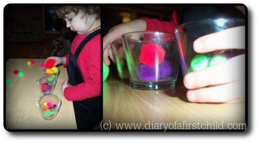 We changed it up a bit, and I took all the balls and picked out colours for her, which she then named and popped in the right glasses.
