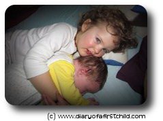 A few days later we were on the train to London. You asked to hold ‘my sister’ – whom you sometimes call Missy Pops! – so you were holding her while I folded up the sling. There were two guys sitting opposite us, and you turned to them and said “This is my sister. She was born in the swimmingpool and I was wearing my red swimming costume.” They asked you if you’d been at the birth, and you responded: “Yes, my sister was in mama’s tummy.” I was happy to stop the conversation there!