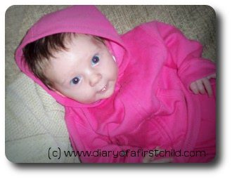 We were sent this clothing set for me to review for work. It’s lovely and all, but oh boy – does she look like a marshmallow or what! Still, what a pretty thing.