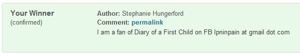 For an additional entry, (which is not compulsory, and is not sponsored by Facebook and which has nothing to do with Facebook or its employees) you can like Diary of a First Child on Facebook, and leave a second comment below saying you have.
