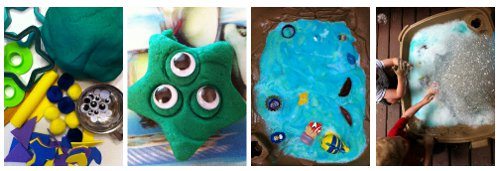 Sensory: Whipped foam and sea animals (use a squirt of foam, a drop of food colouring and about 1/2 cup water in the food proccessor. I use baby soap)