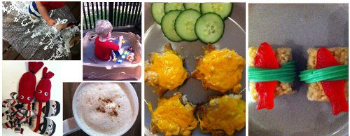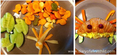 We started the Ocean theme this week on Sunday afternoon, with a yummy cheese and egg croissant, shaped like a crab. My kids (and daddy!) loved it. I think I may be winning them over, they are much less picky than they used to be.