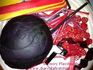 Sensory: Black playdough with glitter, painting with hotweel cars