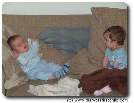 This picture made me giggle. Ryan is three weeks younger than Aviya, and is one gorgeous little boy. While his brother and her sister were outside pouring the foam from the coloured foam on bubble wrap into the sand and water table and their mamas were running up and down between the four of them, Ryan was telling Aviya a story, and I think the punch line was “Really, Aviya, it was THAT big!”