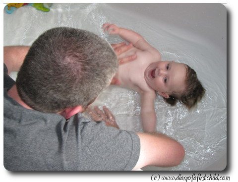 Somehow Martin’s missed out on bath time with Aviya for almost five months! Here we have daddy’s first bath. She loves the bath as much as Ameli did. Daddy even remembered to put nothing but lavender oil in the water. Love him, love her. Gorgeous.