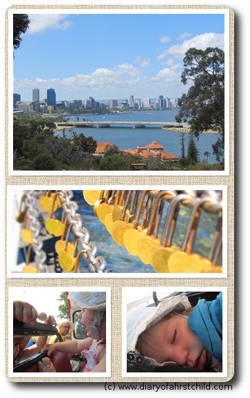 We decided to grab a touristy day while we can, so my gran, sister and the girls and I went on an Open Top Bus tour of Perth city. Ironically, with all our up and down to the hospital and getting lost repeatedly without GPS we’ve seen most of the areas the tour showed us, but at least they gave us more information that you get on the map! The first picture is Perth from Kings Park, the second are locks that lovers and sweethearts have fastened outside the Bell Tower (I’d love to know how many of those relationships are still going!) Bottom left the girls are ‘chatting’ to each other, and right is Aviya, fast asleep and unfussed by the tour!