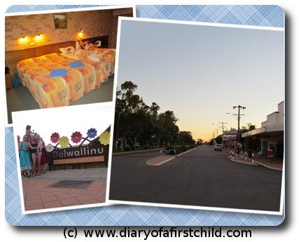 On the road again, we headed up north, into the outback. Our first stop was a town called Dalwallinu. You know those one horse towns in the middle of nowhere? Well, this was one, about a hundred years ago. Till the horse died. The people were friendly though, and we pushed the bed together for the girls, my sister and I to have the biggest family bed ever.