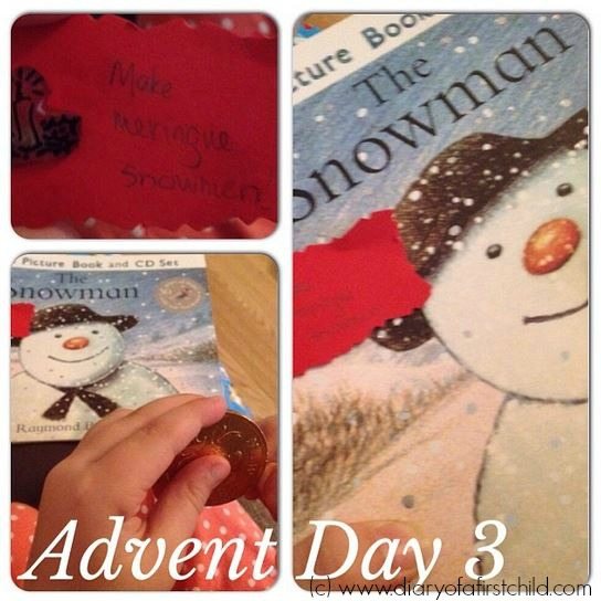 The advent calendar book for day three was The Snowman, a much loved classic I always hear people saying they remember from their own childhoods. The first time I ever heard of it was when I was sent the book for review earlier in the year. Apparently there are two versions – one with no text, just images, and this one, a written story. I don’t know the original, but this one was kind of sweet, although I’m not sure about the message that it’s a good thing to sneak out and go to a dance with a random snowman! But my paranoia aside, the children love the story. This particular version came with a CD so there’s a song we got to listen and dance to a few times over too.