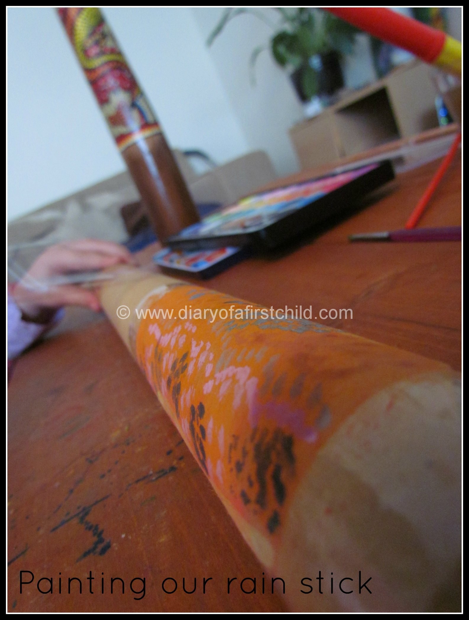 We had a fabulous time making a rain stick. It worked out really well, and is still one of Ameli’s favourite activities from this week. Here’s a great YouTube clip of how it should sound, which obviously it won’t quite do in a cardboard tube, but it’s also nice to show children what it is you’re making.