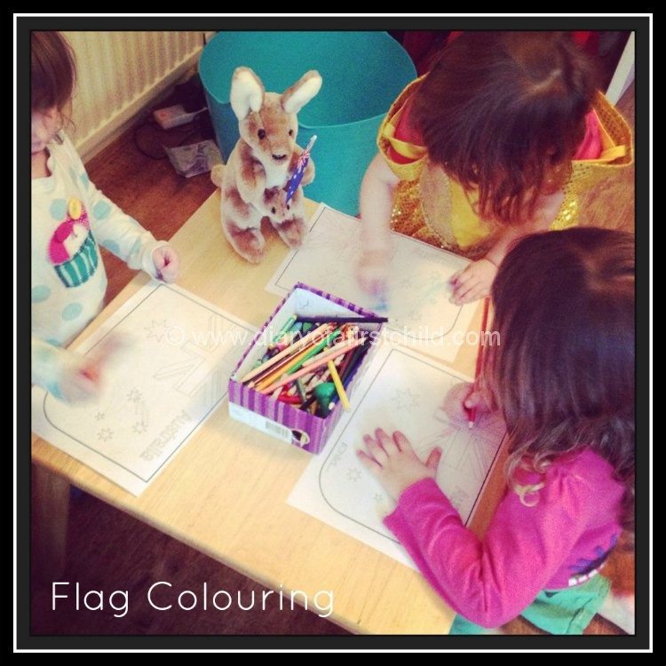 Another iChild printable, but there are plenty of options available online. The children spent a bit of time colouring the flag of Australia. We had a kangaroo holding the flag for inspiration.
