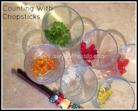 I wouldn’t normally go out of my way to have this kind of sweet in the house. I think they’re really hard to digest, among other things! But, we were trying to learn how to use chopsticks, and also doing some basic 1+1, 3-2 mathematics. Ameli spent more time laughing about the silliness of chopsticks than much else, but it provided a few giggles, which is always nice.