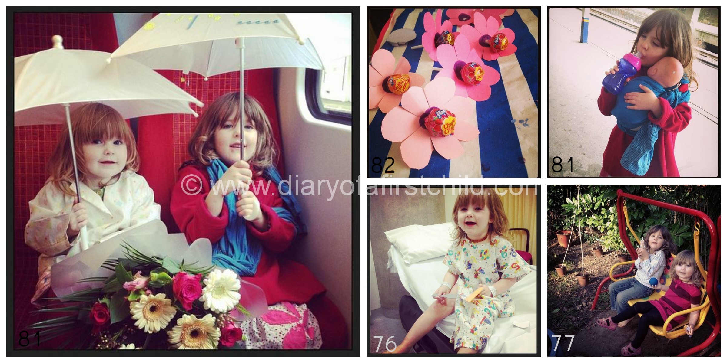 81: Moonpig Event – I wasn’t really sure about taking Aviya out for this event today, but in the end we had a lovely time, so I’m glad we did. The Moonpig people gave the girls an umbrella each and these have been their pride and joy ever since!