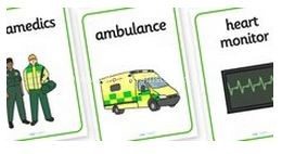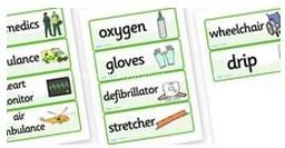 We took an ambulances word sheet from the role play section, and cut them out and used them for a treasure hunt, before using the same pieces to trace the letters and try to read the words.