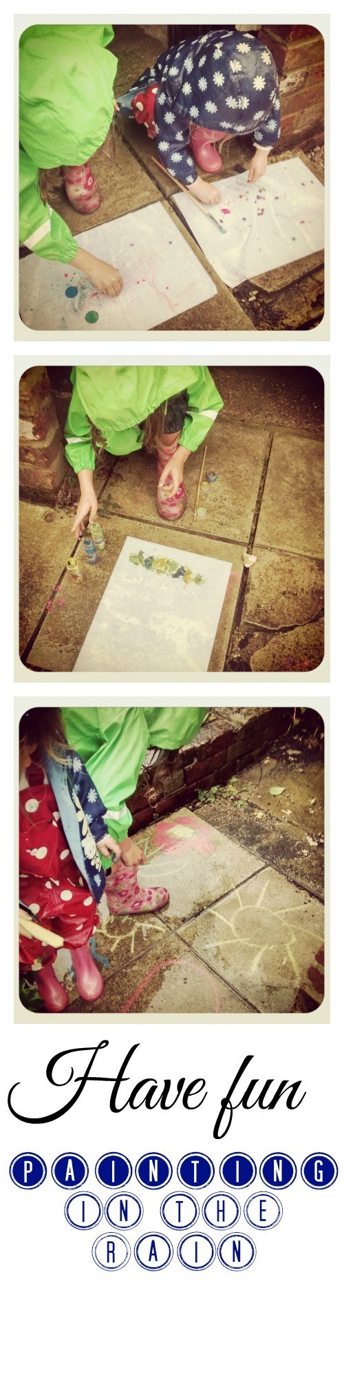 It’s been a rainy day here on the Isle of Wight, and we’ve been spoiled by some of the good weather we’ve had recently. With the children up from before 6 this morning, we’d already had a fairy tea party and watched a movie by 11am and I didn’t feel I had the strength to keep them indoors all day. Instead we pulled on the wellies and rain gear and went painting in the rain.